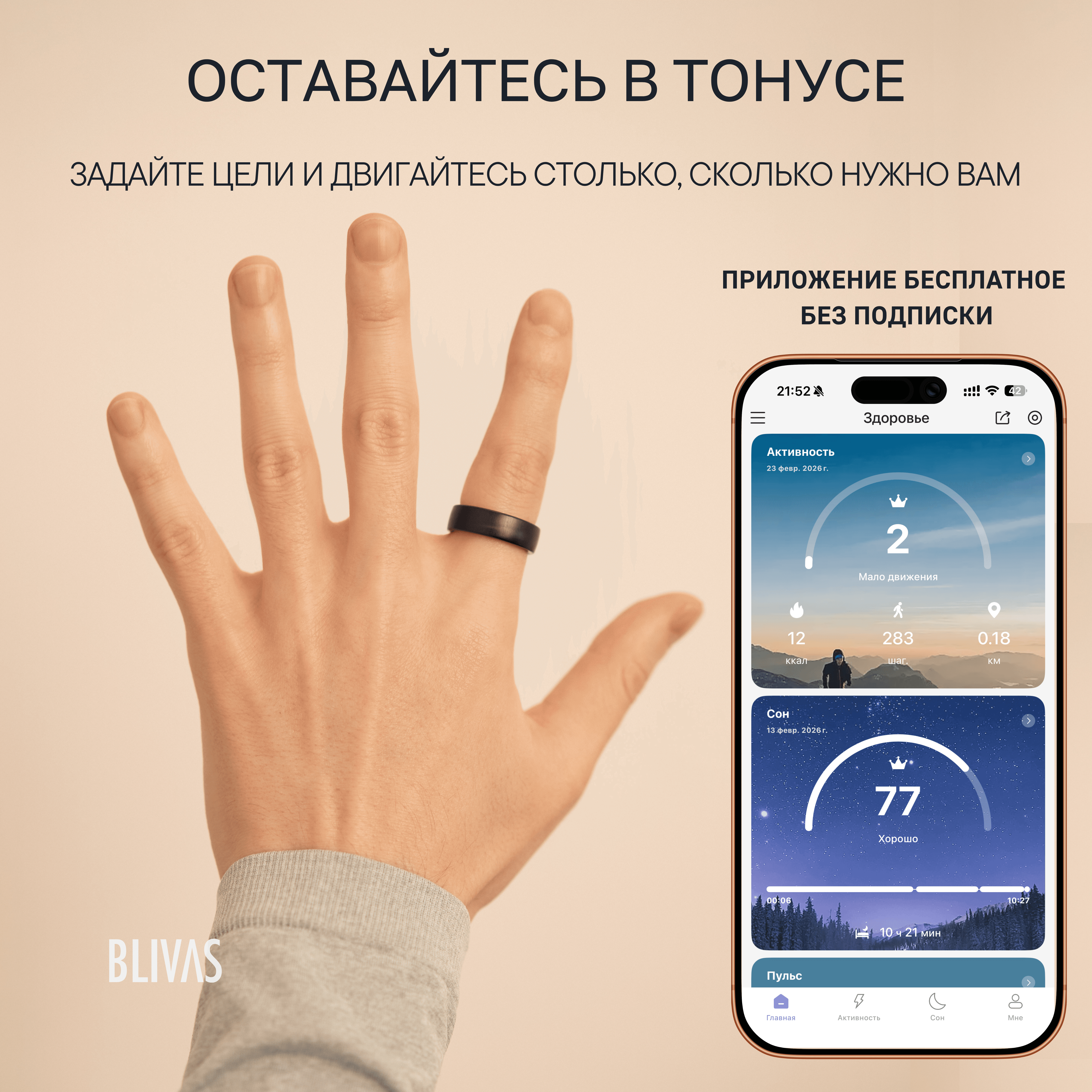 Нет. BLIVAS Ring работает без подписки. После покупки все основные функции: сон, шаги, пульс и общее состояние - доступны в приложении без дополнительных ежемесячных платежей.